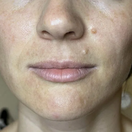 - В'ялість шкіри на обличчі, в області шиї та декольте